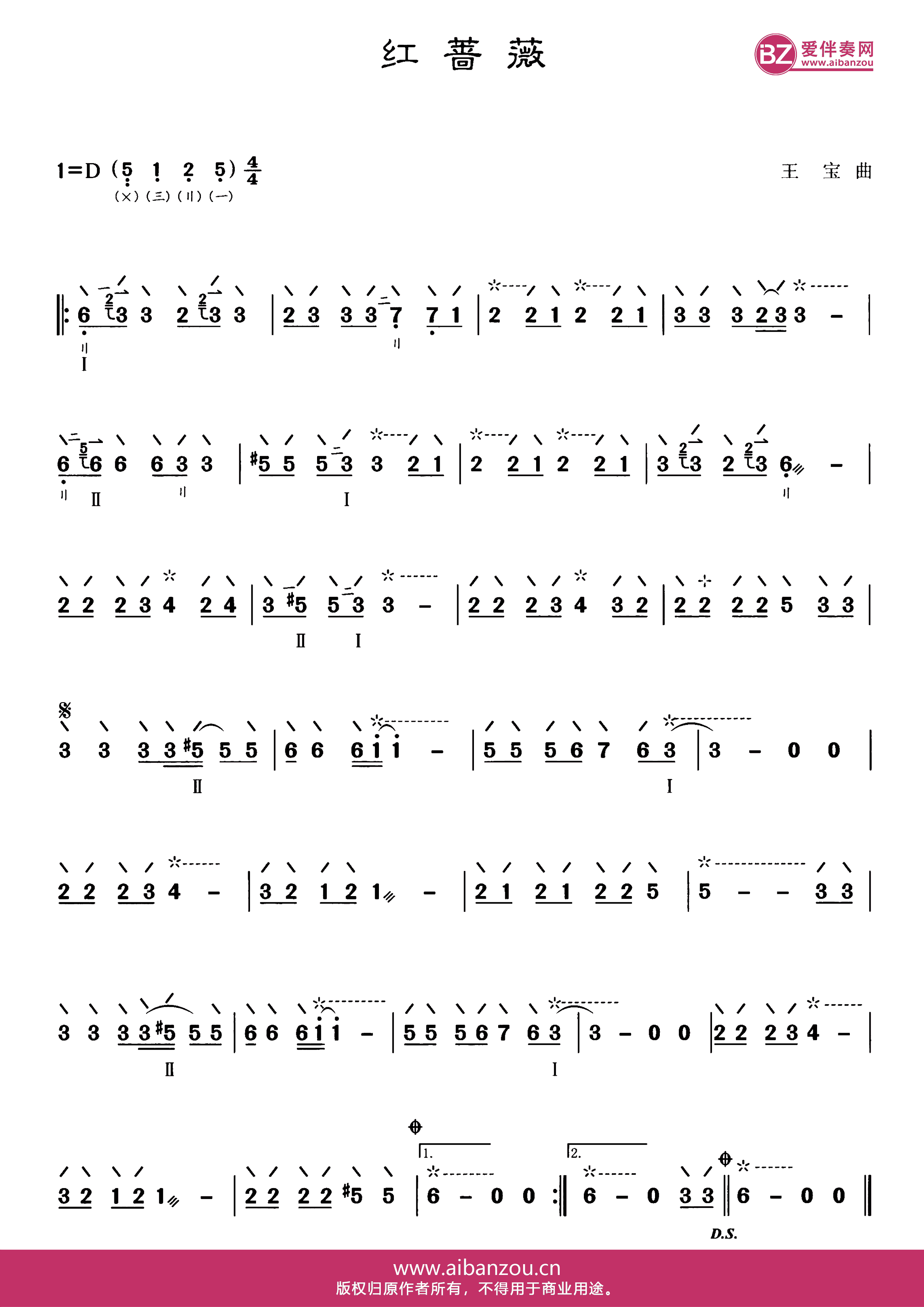 红蔷薇(琵琶谱-D调)